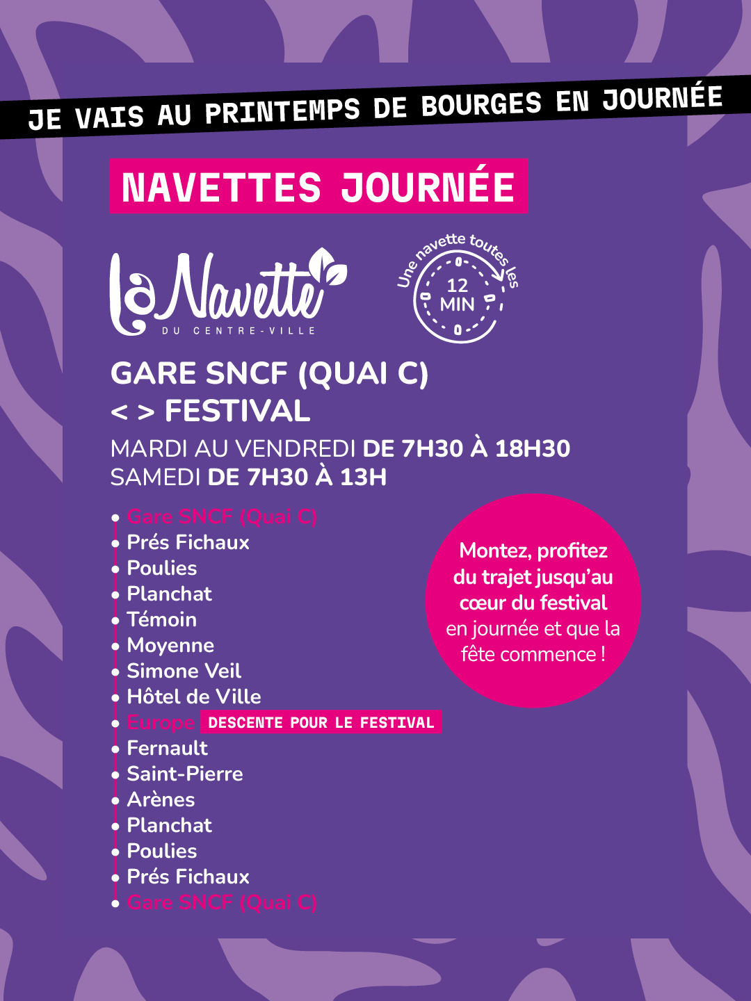 ⬇️ TÉLÉCHARGEZ LES HORAIRES DES BUS EN JOURNÉE PENDANT LE FESTIVAL ⬇️